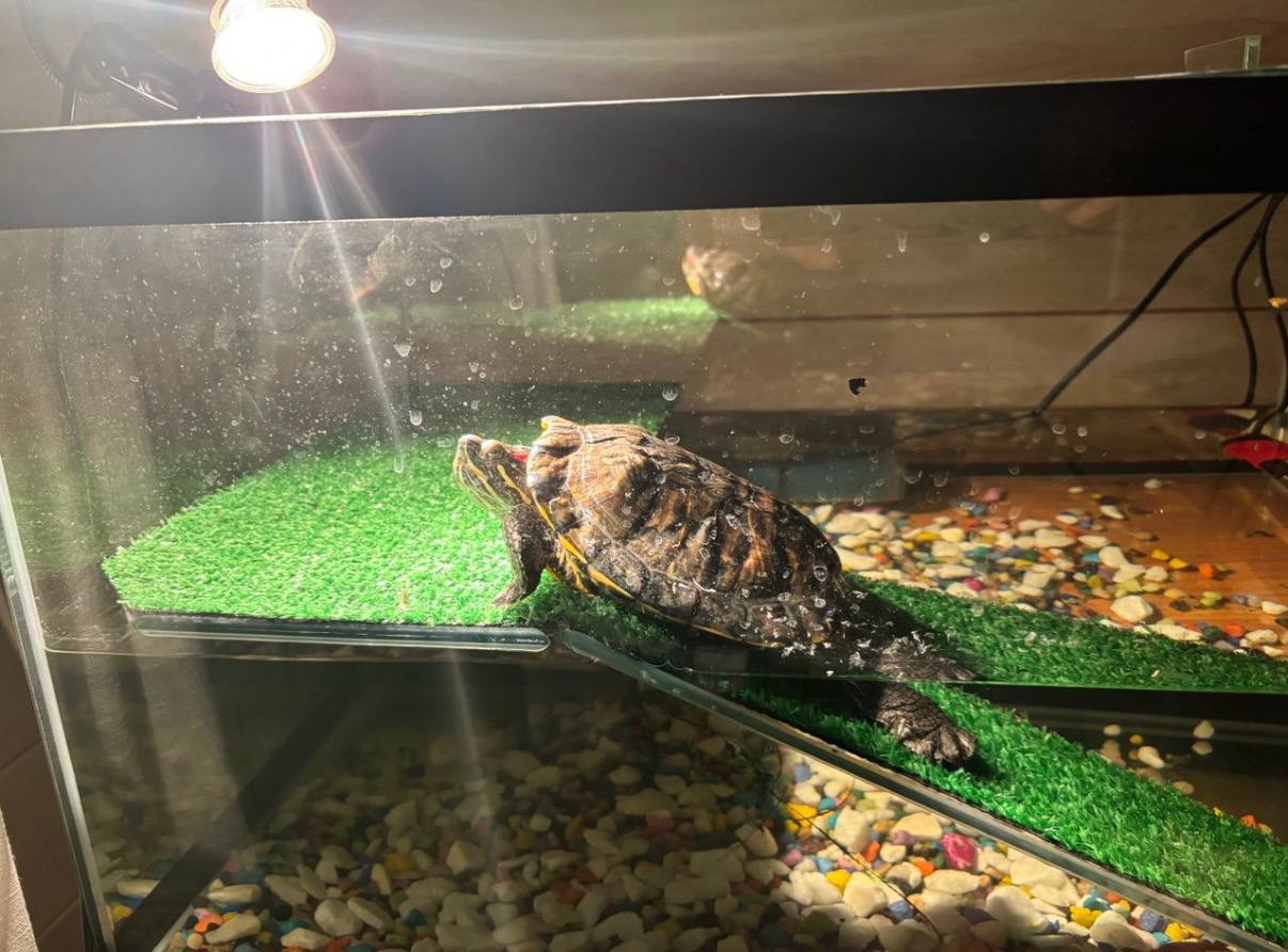 Красноухую черепаху зовут Норрис, я привёз её со сборов в Анапе, когда мне было лет семь. Она выросла такой большой, что пришлось покупать тут недавно новый аквариум. (смеётся) Также раньше у нас было две собаки. Одна – дворняга, помесь с овчаркой, звали Дик. А сейчас с нами живёт пёс породы бигль – правда, он уже старенький, слепой и глухой. Я очень просил такую собаку, потому что увидел её в фильме. Наконец у меня есть кот, которого мама подобрала на дороге – его сбила машина. Назвали Грей, потому что он серый. В общем, я очень люблю животных.